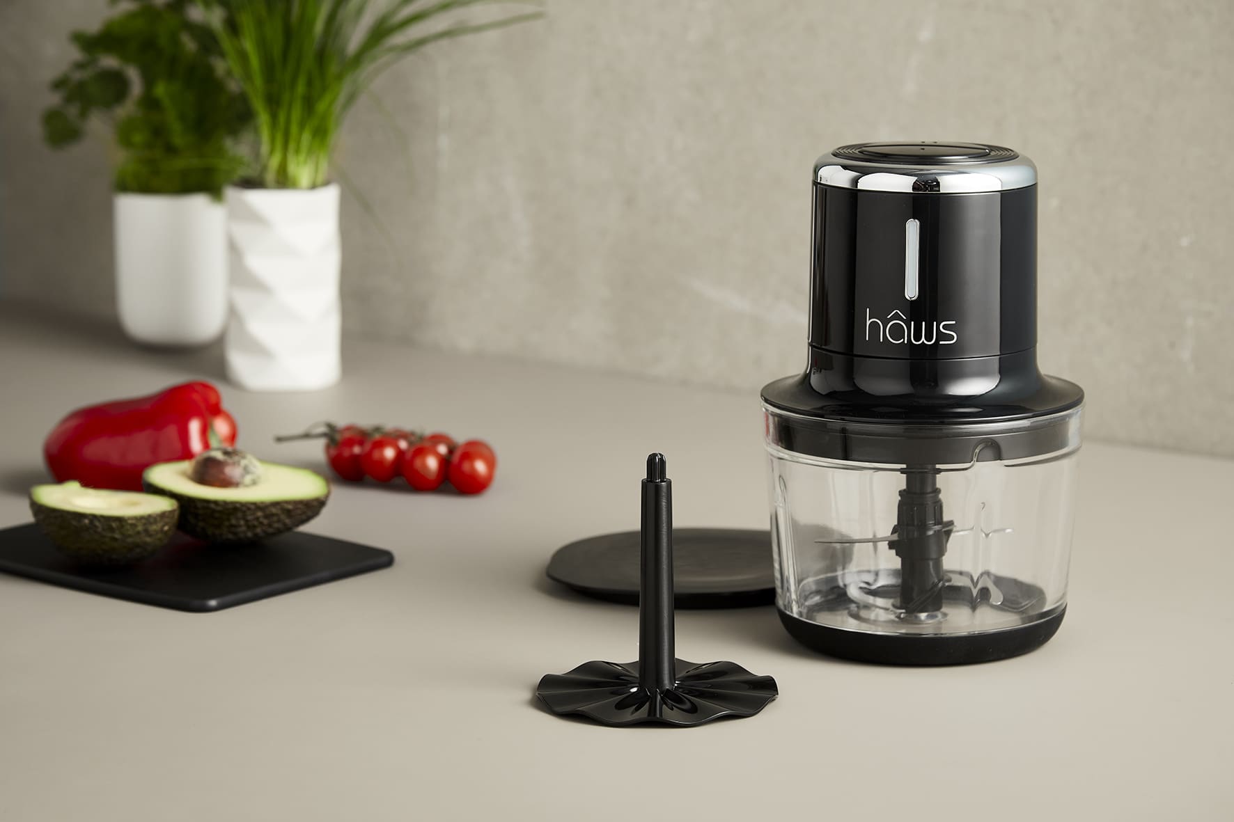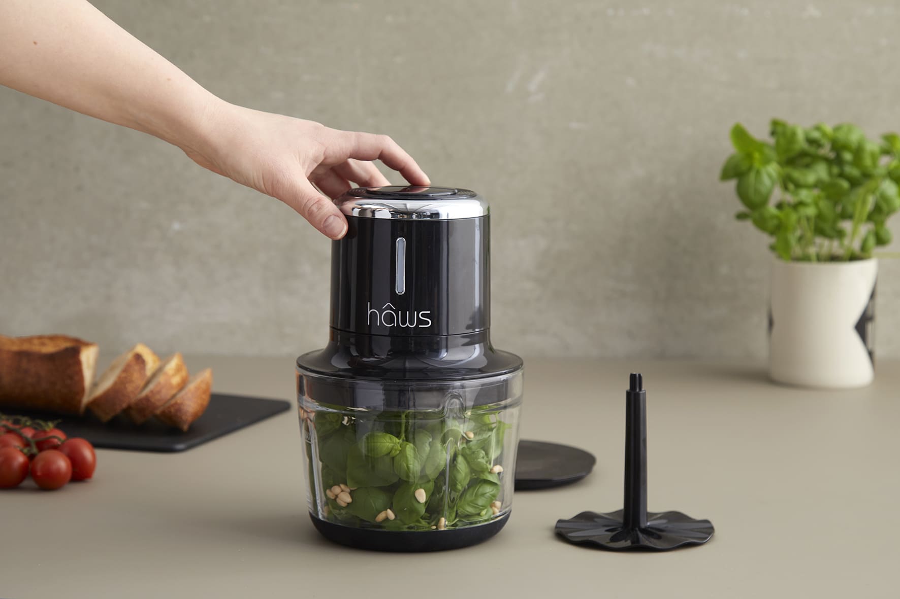 Hâws ledningsfri minihakker med en 1000 ml beholder. Læs hele beskrivelsen