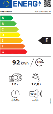 Vestfrost Opvaskemaskine HOF OPU 6049 HV